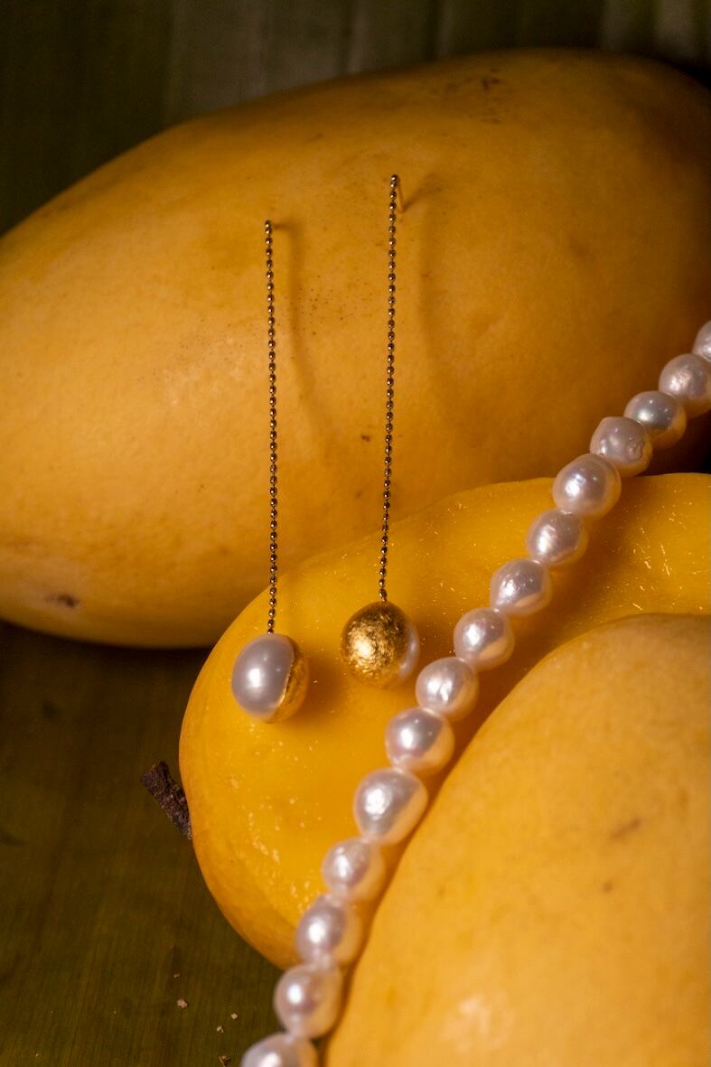 淡水パールの柔らかな艶に、金の静かな輝きが重なります。