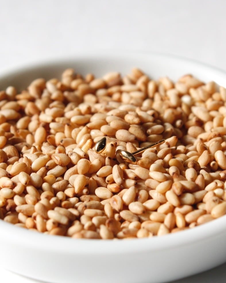 本物の胡麻を一点ずつ型取りし、K18で鋳造したミニマルピアスです。